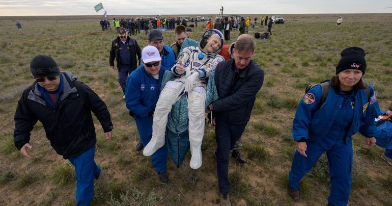 นักบินอวกาศที่ดำรงตำแหน่งนานที่สุดของสหรัฐฯ กลับถึงโลกในวันเกิดครบรอบ 70 ปี