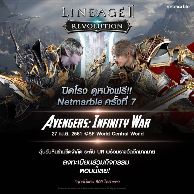 Netmarble เซอร์ไพรส์แฟน Lineage2 Revolution เหมาโรงดู Avengers: Infinity War ฟรี 300 ที่นั่ง!