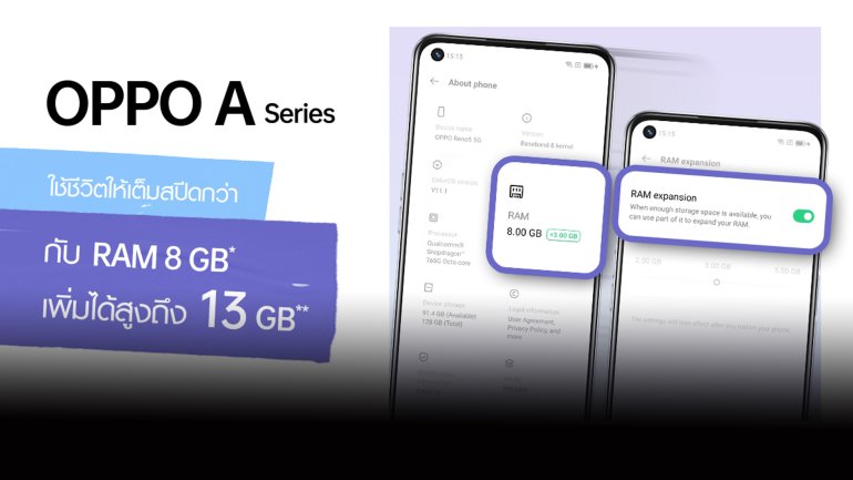 OPPO เปิดให้อัปเดตเทคโนโลยี RAM Expansion เพิ่มเติมบนสมาร์ตโฟน A Series
