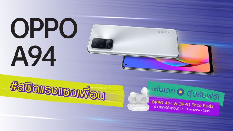 ลุ้นรับ OPPO A94 สีใหม่ กับกิจกรรม TikTok Challenge #สปีดแรงแซงเพื่อน วันนี้ถึง 31 พ.ค. เท่านั้น!
