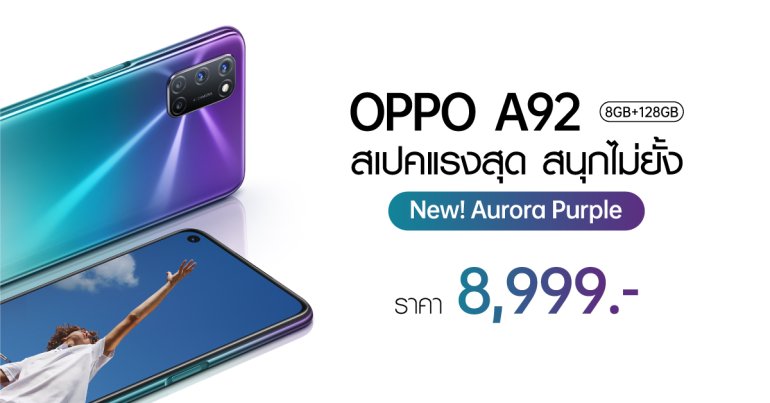 วางจำหน่ายแล้ว! OPPO A92 สีใหม่! Aurora Purple ราคา 8,999 บาท