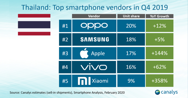 ไตรมาสสุดท้ายของปี 2562 OPPO กลับมาครองอันดับหนึ่งสมาร์ตโฟนขายดีอีกครั้ง