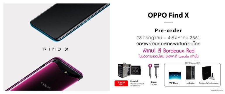 โหดมาก! Oppo Find X เปิด Pre Order ในไทย แถมไดร์เป่าผม Dyson Supersonic ราคาหมื่นห้า พร้อมหูฟัง Marshall