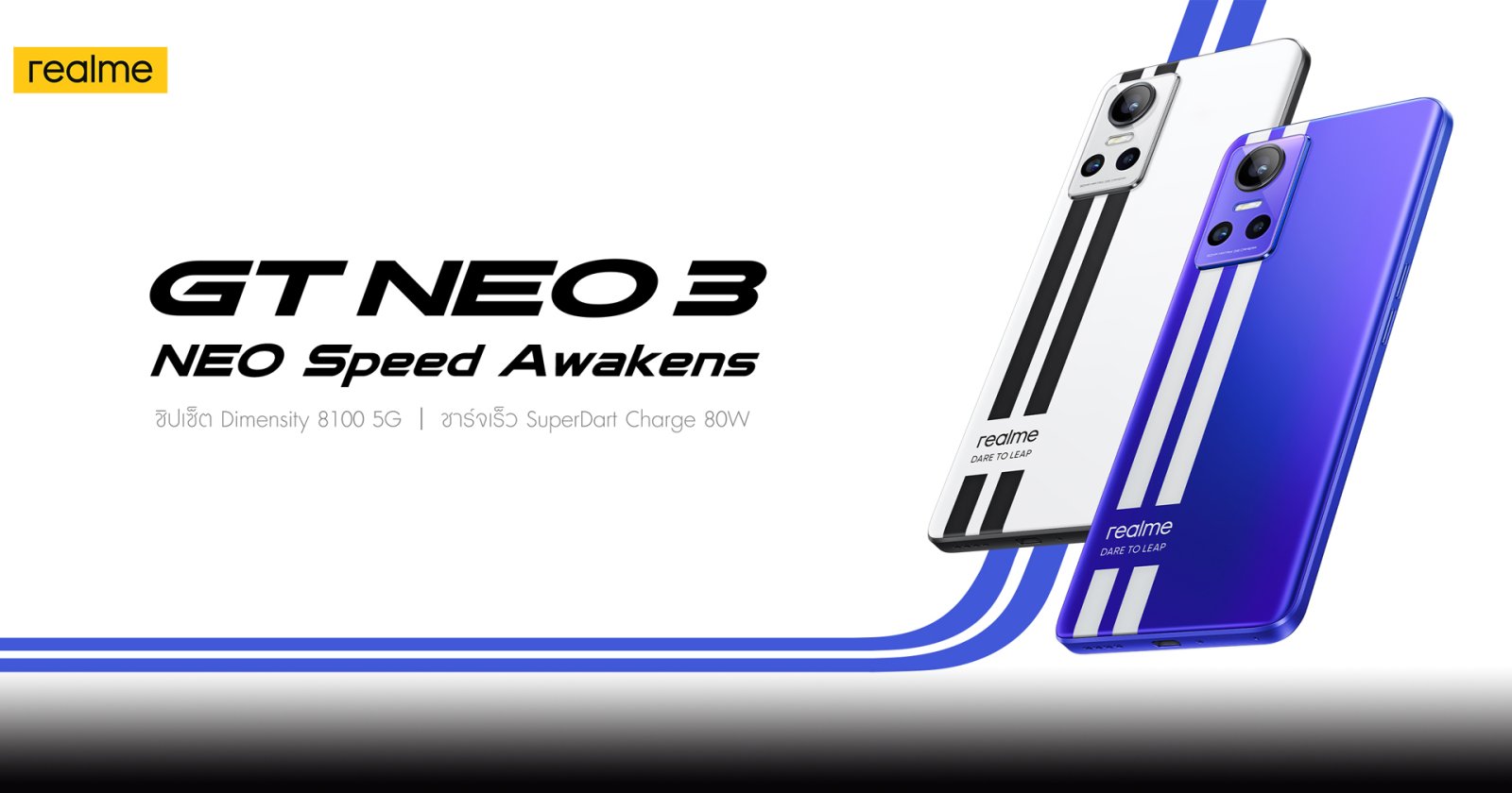 08/06/2022realme เปิดตัวสมาร์ตโฟนเรือธงรุ่นใหม่ล่าสุด กับ “realme GT NEO 3 Series” จัดเต็มกับประสบการณ์ความเร็ว และแรง ในแบบ NEO Speed Awakens ทั้ง 2 รุ่น ได้แก่ realme GT NEO 3 สมาร์ตโฟนกลุ่มแรกของโลกที่ใช้หน่วยประมวลผลรุ่นใหม่ล่าสุดจากค่าย MediaTek อย่าง Dimensity 8100 มอบสุดยอดประสิทธิภาพการทำงานแบบจัดเต็ม และ realme GT NEO 3T มาพร้อมขุมพลัง Qualcomm Snapdragon 870 และเทคโนโลยี SuperDart Charge 80W ที่ตอบโจทย์การใช้งานในชีวิตประจำวันได้อย่างสมบูรณ์แบบ…