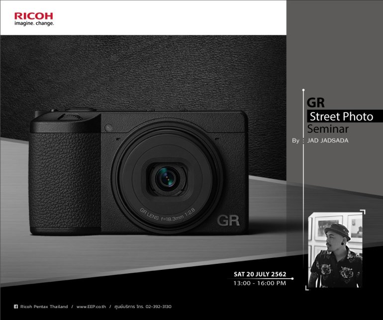 กิจกรรมดีๆ ที่ไม่อยากให้ชาว GRist พลาด !! ...เรียนรู้เทคนิคการถ่ายภาพสตรีทฯ พร้อมแนวคิดการสร้างสรรค์ภาพถ่ายจากประสบการณ์ตรงของ Jad Jadsada (คุณ เจษฏา อินเอก) ช่างภาพสตรีทฯ ชั้นนำของเมืองไทย !! ;) GR Street Photo Seminar by Jad Jadsada สถานที่จัดงาน และเวลา วันเสาร์ที่ 20 กรกฎาคม 2562 เวลา 13.00 - 16.00 น. ห้อง Hen ชั้น 2, E88 Bangkok (ใกล้ BTS สถานีพระโขนง) แผนที่ รายละเอียด และเงื่อนไขของการร่วมกิจกรรมในครั้งนี้ เอกสิทธิ์เฉพาะลูกค้าที่เป็นเจ้าของกล้อง Ricoh GR Series รุ่นใดก็ได้ ที่มีใบรับประกันของ บริษัท อิสท์ เอ็นเตอร์ไพรส์…เอกพล ชูเชิด | 2392 days ago