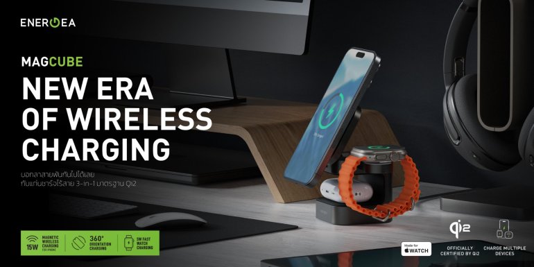 RTB Technology ตัวแทนจำหน่ายแบรนด์ Energea เปิดตัว MagCube แท่นชาร์จแม่เหล็กไร้สายตั้งโต๊ะ 3-in-1 ที่ใช้มาตรฐาน Qi2 ซึ่งเป็นมาตรฐานการชาร์จไร้สายใหม่ล่าสุด ออกแบบตัวแท่นชาร์จเป็นทรงลูกบาศก์ สามารถปรับระดับได้หลายมุมมอง เพื่อให้คุณชาร์จ iPhone ได้อย่างมีประสิทธิภาพทั้งแนวตั้งและแนวนอนเอกพล ชูเชิด | 537 days ago
