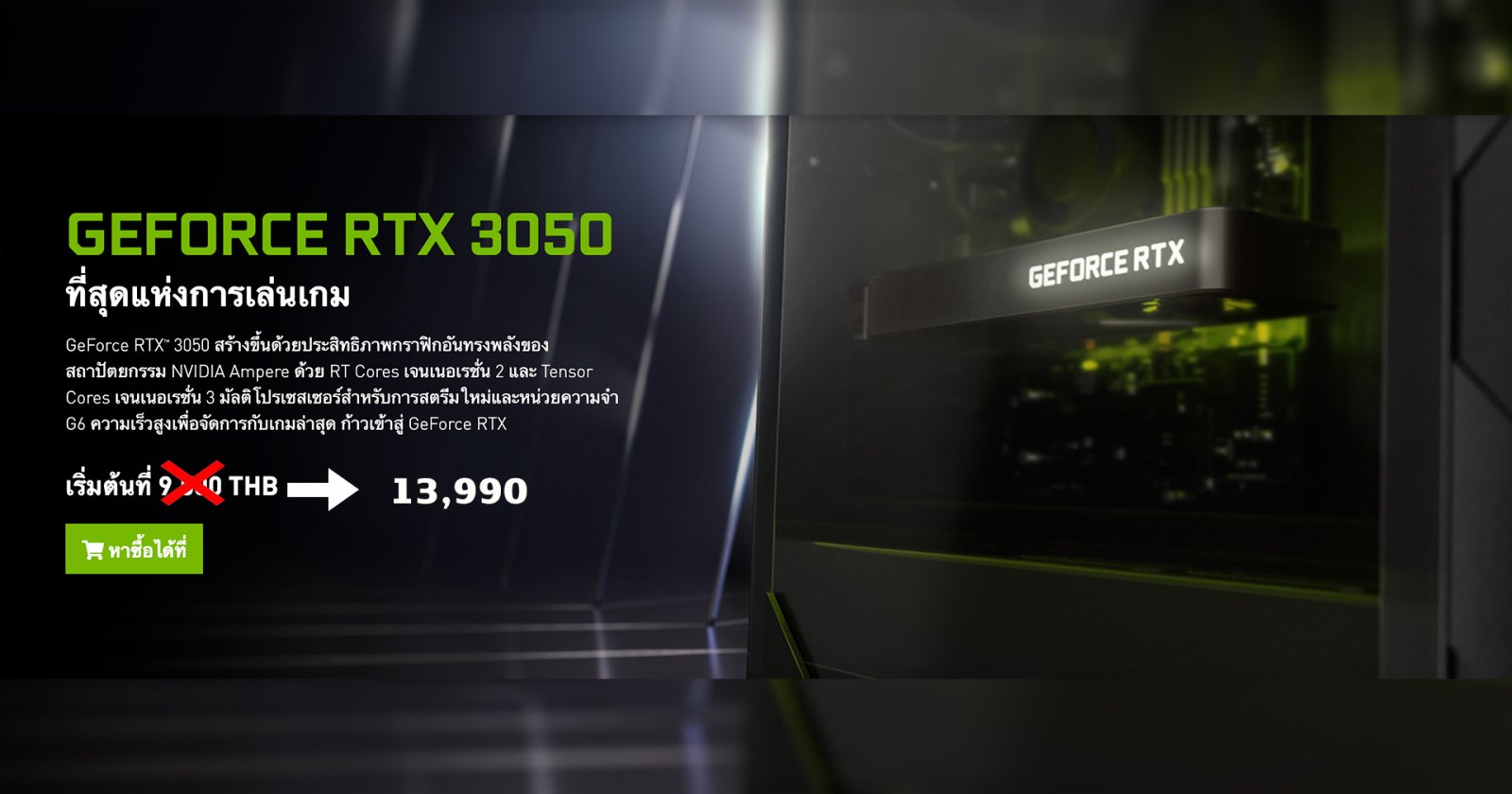 RTX 3050 คืออีกหนึ่งการ์ดจอระดับเริ่มต้นที่หลาย ๆ คนเฝ้ารอทั้งประสิทธิภาพที่ดูดีทีเดียวบวกกับการที่ใช้เทคโนโลยีใหม่ ๆ อย่าง Raytracing และ DLSS ได้แถมราคา MSRP เปิดมาแค่ 9,500 บาทเท่านั้นและในประเทศไทยก็ได้เริ่มขายไปเมื่อวานนี้ (28/1/22) เรามาส่องดูราคาเจ้า RTX 3050 ในไทยกันดีกว่า…