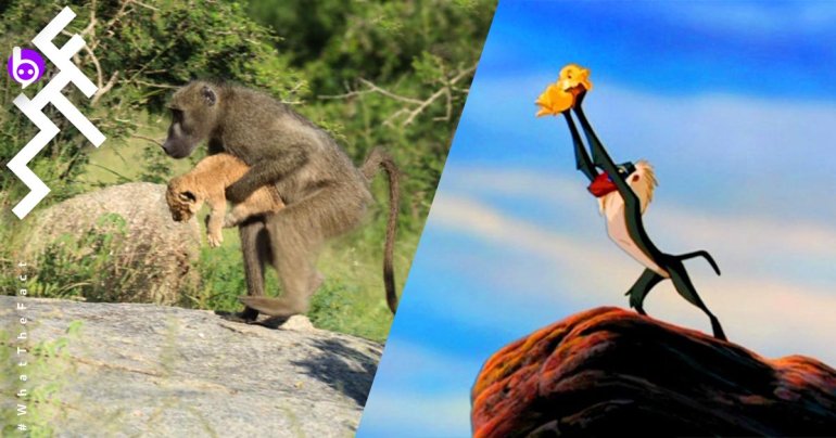 อย่างกับหนัง The Lion King เมื่อลิงบาบูนอุ้มลูกสิงโตปีนขึ้นต้นไม้