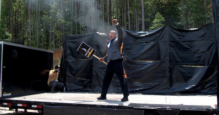 สตันท์แมนโชว์จุดไฟเผาตัวเอง เพื่อสนับสนุนการประท้วงของกลุ่ม SAG-AFTRA