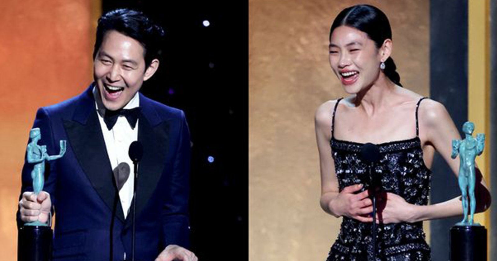 28/02/2022าน SAG Awards 2022 ที่ผ่านมา มีเรื่องโมเมนต์ต่าง ๆ ที่เกิดขึ้นมากมาย ตั้งแต่การประกาศผลรางวัลสุดต่าง ๆ รวมถึงมหกรรมดาราแซวเพื่อนดาราด้วย ที่เรียกเสียงฮาจากผู้ชมทางบ้านได้ตลอด และ โมเมนต์สุดเซอร์ไพรส์ก็คงจะหนีไม่พ้นเหตุการณ์ที่อีจองแจ-จองโฮยอน นักแสดงจาก ‘Squid Game’ คว้ารางวัลนักแสดงนำชาย- หญิงยอดเยี่ยมมาครอง