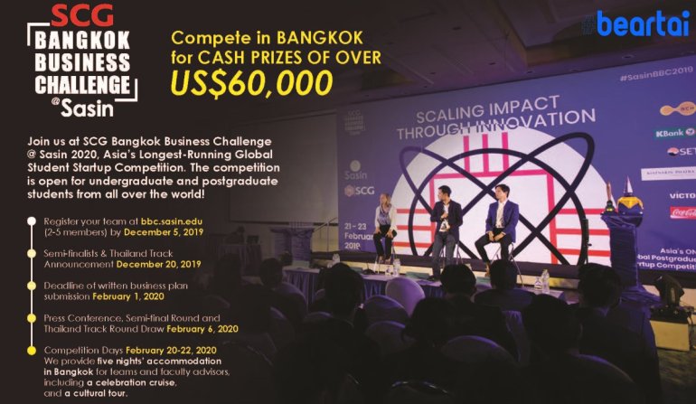 เอสซีจี และ สถาบันบัณฑิตบริหารธุรกิจ ศศินทร์ แห่งจุฬาลงกรณ์มหาวิทยาลัย (Sasin School of Management) ผนึกกำลังจัด “SCG Bangkok Business Challenge at Sasin 2020” เปิดเวทีการแข่งขันสร้างแผนธุรกิจสตาร์ทอัพระดับโลกภาคภาษาอังกฤษ ซึ่งในปีนี้ไม่ได้จำกัดผู้สมัครเฉพาะนิสิต นักศึกษา ระดับปริญญาโทเท่านั้น แต่เปิดโอกาสให้ระดับปริญญาตรีได้เข้าร่วมการแข่งขันสร้างแผนธุรกิจสตาร์ทอัพระดับโลกเป็นครั้งแรก ตลอดระยะเวลาที่ผ่านมาได้รับความสนใจเป็นอย่างมากจากสถาบันที่มีชื่อเสียงชั้นนำระดับโลกหลากหลายประเทศเข้าร่วมการแข่งขัน อาทิ University of Cambridge สหราชอาณาจักร และ University of Oregon สหรัฐอเมริกา University of Toronto ประเทศแคนาดา Nanyang Technological University ประเทศสิงคโปร์ Queensland University of Technology ประเทศออสเตรเลีย ร่วมด้วยสถาบันการศึกษาต่างๆจากประเทศไทยได้แก่ ศศินทร์ จุฬาลงกรณ์มหาวิทยาลัย มหาวิทยาลัยธรรมศาสตร์ มหาวิทยาลัยเกษตรศาสตร์ และมหาวิทยาลัยอัสสัมชัญ เป็นต้น การแข่งขัน SCG…Totsapon Kritsadangphorn | 2248 days ago