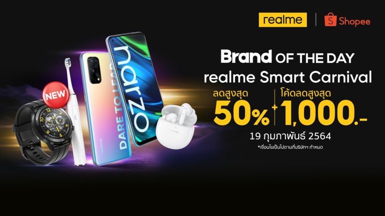realme จัดแคมเปญ realme Smart Carnival ลดสูงสุด 50% พร้อมโค้ดส่วนลดสูงสุด 1,000 บาท