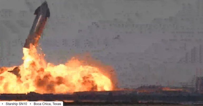 การบินทดสอบระดับสูงของ SN10 ที่ระดับความสูง 10 กม. ของ SpaceX เมื่อ 3 มีนาคมที่สามารถพลิกตัวกลับมาลงจอดได้สำเร็จ แต่หลังจากนั้นราว 9 - 10 นาทีได้เกิดเหตุระเบิดขึ้นสนั่น ซึ่งต่อมามีตาวิเศษเห็นว่าขณะลงจอดขารองจอดไม่ถูกล็อกให้เข้าที่ เป็นไปได้ว่าไม่สามารถลดแรงกระแทกได้อย่างเต็มที่ ล่าสุด Elon Musk ซีอีโอของ SpaceX ได้ทวีตตอบถึงประเด็นนี้ว่าเครื่องยนต์ SN10 มีแรงขับที่ต่ำ เนื่องจากอาจได้รับฮีเลียมบางส่วนที่มาจากถังเชื้อเพลิงส่วนหัว ซึ่งการลงจอดด้วยความเร็ว 10 เมตรต่อวินาทีมีผลทำให้เกิดการกระแทกของขารองจอดและกระโปรงของตัวยาน และจะมีการแก้ไขสิ่งเหล่านี้ใน SN1104/03/2021