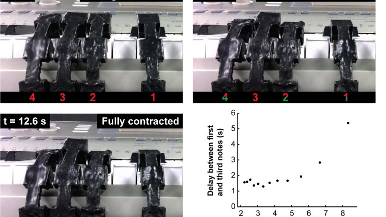หุ่นยนต์นิ่มใช้หน่วยความขับเคลื่อนด้วยอากาศแสดงความสามารถเล่นเปียโน