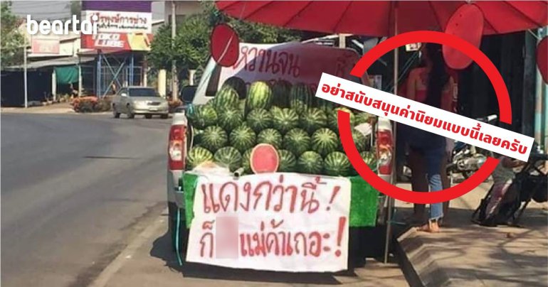 เรากำลังอยู่ในยุคที่โลกโซเชียลมีอิทธิพลเหนือกฏหมาย ทุกวันนี้ตำรวจ นักข่าว ไม่ต้องหาเบาะแสคดีใด ๆ ทั้งสิ้น คอยตามข่าวบนโลกโซเชียลเนี่ยละ เพจดังหยิบเรื่องไหนมาขยาย เคสไหนคนแชร์กันเยอะก็กลายเป็นข่าวดัง คดีฆาตกรรมยัดศพใส่รถเข็นรถลงน้ำ ไม่มีใครเห็น ไม่มีกล้องวงจรปิด คนร้ายใช้ชีวิตสุขสบายไปได้ตั้งหลายปี หรืออย่างคดีไอซ์หีบเหล็ก ถ้ามันไม่เมาแพล่มออกมาเองก็ยังมีเหยื่อมาให้มันฝังเล่นได้อีกหลายศพ กลับกันถ้าคุณเตะหมาสักตัว แต่ดั๊นมีกล้องวงจรปิดจับได้ เอาคลิปไปปล่อยลงโลกโซเชียล มึงกลายเป็นอาชญากรสังคมภายในไม่กี่นาที ถึงกับต้องกราบขอโทษหมากันเลย ที่เกริ่นมาคือหยิบยกให้เห็นอิทธิพลของโลกโซเชียล เพื่อให้ฉุกคิดว่าทุกคนสามารถยับยั้งและส่งเสริมกระแสนิยมในบ้านเราได้ กับเทรนด์ใหม่ที่กำลังจะมา และไม่น่าส่งเสริมนัก คือการที่บรรดาพ่อค้าแม่ค้าขายผลไม้ เริ่มสร้างจุดขายด้วยการใช้ "คำหยาบ" มาเรียกร้องความสนใจ หลายปีก่อน มีป้ายร้านขายมะม่วงเขียนว่า "เปรี้ยวจนแทดสั่น" ได้ผลครับ คนแชร์กันว่อนเลย หลังจากนั้นก็มีเจ้าอื่นเริ่มทำตาม พอเห็นแชร์กันบ้างประปราย มันเริ่มจะกลายเป็นกระแสฮิตล่ะ วันนี้เจ้าใหม่แม่ค้าขายแตงโม ภาพที่แนบมานี่ล่ะ เพจใหญ่เอาไปเล่น คนแชร์กันเพียบ สิ่งที่จะตามมาคืออะไร คนขายผลไม้ได้ไอเดีย เออได้ผลวุ้ย วิธีนี้ แค่เขียนให้มันหยาบไว้ เอาอวัยวะเพศมาเล่นแค่นี้ ร้านก็ดัง แล้วต่อไปทุกร้านเกิดตามกระแสนี้กันไปหมดล่ะ บ้านเมืองคงน่าดูนะ ร้านล้างรถ "ล้างสะอาดกว่านี้ ก็จวยเจ้าของร้านแล้ว" ร้านที่นอน "เย็บกันให้สะใจ…สุชยา เกษจำรัส | 2132 days ago