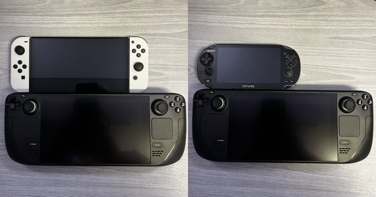 Steam Deck มีขนาดเครื่องที่ใหญ่มาก เมื่อเทียบกับเครื่องเกมพกพาอื่น ๆ
