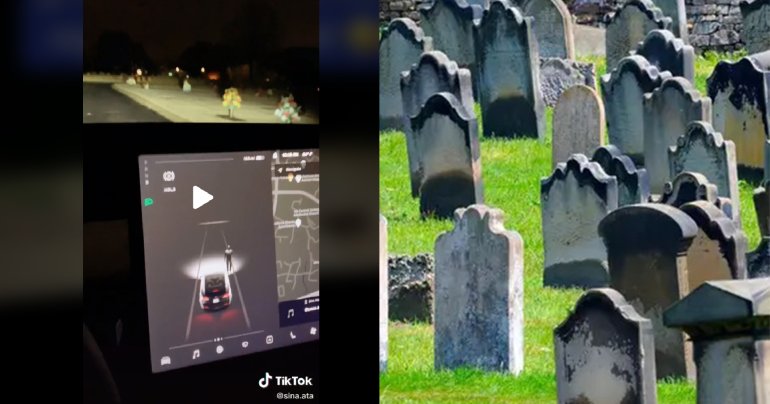 เจองี้เป็นหลอน! ขับ Tesla ผ่านสุสานกลางดึก เซนเซอร์จับคนหน้ารถได้ทั้ง ๆ ที่ไม่มีใคร