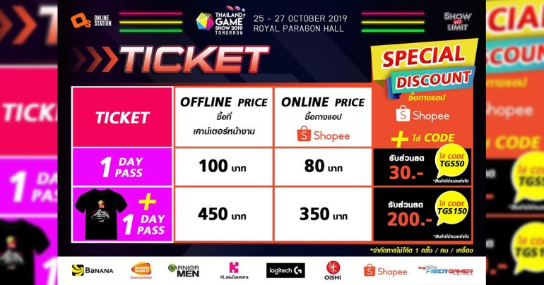 มีดีลไหนให้มากกว่านี้ไหม!? Thailand Game Show ปี 2019 นี้ ใช้ Shopee ซื้อบัตรพร้อมเสื้อได้ส่วนลด 200 บาท!