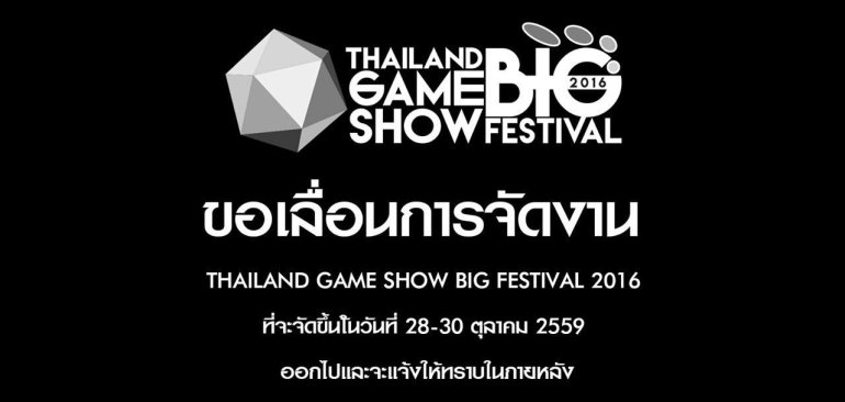 หลังจากประกาศเลื่อนการจัดงาน Thailand Game Show BIG Festival 2016 ออกไปอย่างไม่มีกำหนดเมื่อช่วงกลางเดือนที่ผ่านมา ล่าสุด ผู้จัดงาน Thailand Game Show BIG Festival 2016 ได้ประกาศวันจัดงานอย่างเป็นทางการอีกครั้ง จากเดิม วันที่ 28 - 30 ตุลาคม 2559 เป็นวันที่ 9 - 11 ธันวาคม 2559 ณ สถานที่เดิม รอยัลพารากอน ชั้น 5 ศูนย์การค้าสยามพารากอนธีระภัทร โตสวัสดิ์ | 3371 days ago