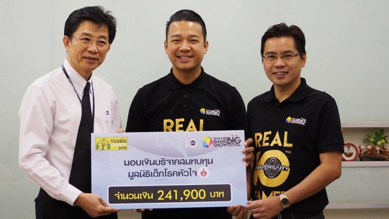 จากกิจกรรม ร่วมประมูลของใช้คนดังกับ “TGSBIG Charity 2016” ช่วยเด็กผู้ป่วยโรคหัวใจโดยไม่หักค่าใช้จ่าย ที่จัดขึ้นในงาน Thailand Game Show BIG Festival 2016 ที่ผ่านมานั้น แสดงให้เห็นถึงการร่วมด้วยช่วยกันสร้างบุญสรา้งกุศลจากทุกคนและทุกส่วน ทำให้จากกิจกรรม ร่วมประมูลของใช้คนดังกับ “TGSBIG Charity 2016” ช่วยเด็กผู้ป่วยโรคหัวใจโดยไม่หักค่าใช้จ่ายนั้นได้รับเงินบริจาคสูงถึง 241,900 บาท และเมื่อวันที่ 2 กุมภาพันธ์ 2559 เหล่าผู้บริหารจาก Thailand Game Show BIG Festival นำโดย คุณพงศ์สุข หิรัญพฤกษ์ กรรมการผู้จัดการ บริษัท โชว์ไร้ขีด จำกัด (SHOW NO LIMIT) และ คุณพารินทร์ วิไลจิตร ผู้จัดการฝ่ายขาย บริษัท ทรู มีเดีย โซลูชั่นส์ จำกัด ได้เดินทางนำเงินจากกิจกรรม ร่วมประมูลของใช้คนดังกับ “TGSBIG Charity 2016” ช่วยเด็กผู้ป่วยโรคหัวใจโดยไม่หักค่าใช้จ่าย ที่จัดขึ้นในงาน Thailand…10/12/2016