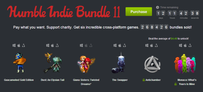 แบไต๋ไฮเทคเคยนำเสนอเรื่องเกี่ยวกับ Humble Bundle หรือโปรโมชั่นพิเศษที่จับหลายๆ เกมมาแพ็กขายรวมกัน โดยให้ผู้ซื้อกำหนดราคาเอง ซื้อกี่บาทก็ได้ แต่ถ้าซื้อเกินค่าเฉลี่ยก็จะได้เกมครบทุกเกมไป วันนี้ก็มีโปรโมชั่นใหม่มาอีกครั้งกับ Humble Indie Bundle 11 ที่จับเกมอินดี้เจ๋งๆ 6 เกมมามัดขายรวมกัน ซึ่งคราวนี้จะเน้นเป็นเกมแนว Platform หรือประมาณกระโดดข้ามหลุมแบบ Mario Guacamelee! Gold Edition เกมนักสู้วิ่งลุยด่านกดแอคชั่นตื้บศัตรูที่เต็มไปด้วยฉากตระการตา ตระการจอย (ตรูจะกดยังไงให้ผ่านเนี่ย) Dust: An Elysian Tail เกม Action-RPG วิ่งลุยด่านที่ใช้ภาพวาดด้วยมือ ทำให้ตัวเกมสวยมาก การต่อสู้ยังสนุกอีกต่างหาก Giana Sisters: Twisted Dreams ภาคล่าสุดของเกม Platformer เก่าแก่ที่ออกภาคแรกมาตั้งแต่ปี 1987 ที่ต้องเล่นเป็น 2 สาวพี่น้อง สลับตัวเล่นไปมา เพื่อพลังพิเศษที่แตกต่าง และฉากที่เปลี่ยนไป ให้เล่นผ่านฉากจนได้ The Swapper เกมลุยด่านแนวคิดแปลกที่ผู้เล่นสามารถโคลนตัวเองออกมาเป็นหลายๆ คนเพื่อแก้ปริศนาผ่านฉากที่ลึกลับให้ได้ Antichamber…เอกพล ชูเชิด | 4344 days ago