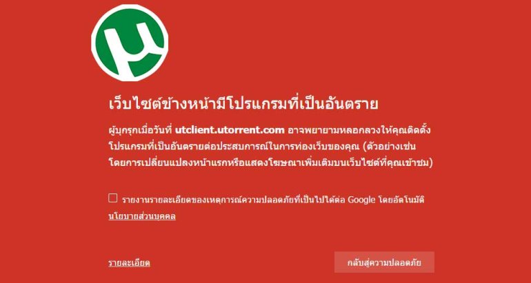 ทาง Google นั้นได้เริ่มดำเนินการในเรื่องของการบล็อคเว็บไซต์ไม่พึงประสงค์เหล่านี้มาตั้งแต่ปีที่แล้วในชื่อ Unwant Software (UwS) ซึ่งระบบนี้จะคอยแจ้งเตือนเมื่อเว็บไซต์ที่เราเข้าไปนั้นมีโปรแกรมไม่พึงประสงค์เหล่านี้อยู่ และงานนี้โปรแกรมโหลดบิทชื่อดังอย่าง uTorrent ก็โดนไปกับเขาด้วย..Totsapon Kritsadangphorn | 3827 days ago