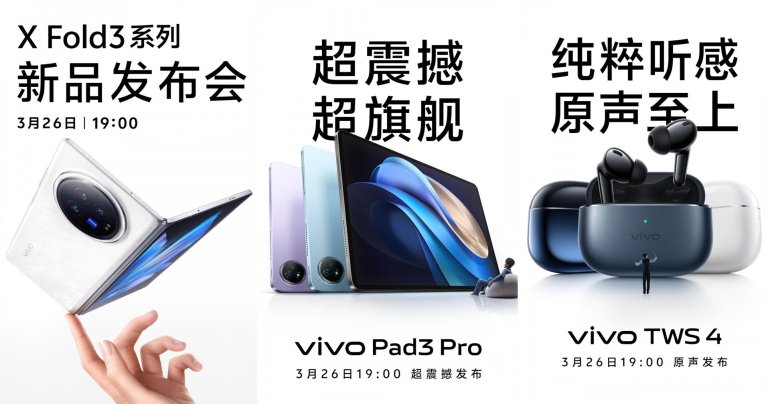 ประกาศแล้ว! vivo X Fold3 series, vivo Pad3 Pro และ vivo TWS 4 จะเปิดตัวครั้งแรก 26 มี.ค.นี้!