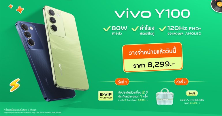 vivo เปิดตัว Y100 สมาร์ตโฟนน้องเล็ก สีเขียวฉ่ำรับซัมเมอร์ ในราคา 8,299 บาท วางจำหน่ายแล้ววันนี้!