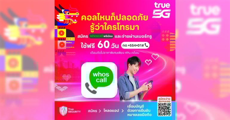 ทรู5G ผนึก แอป Whoscall จัดพิเศษให้ลูกค้าทรู 5G รับมือภัยไซเบอร์ยุคดิจิทัล