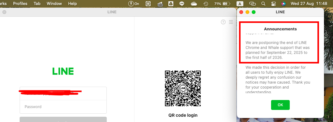 27 สิงหาคม 2025 LINE ได้อัปเดตประกาศเล็กน้อย โดยบอกแผนยุติการสนับสนุนจะอยู่ในช่วงระหว่าง 22 กันยายน 2025 จนถึงช่วงแรกของปี 2026 ถ้ามีการอัปเดตอะไรเพิ่มเติมเราจะมาแจ้งให้ทราบ