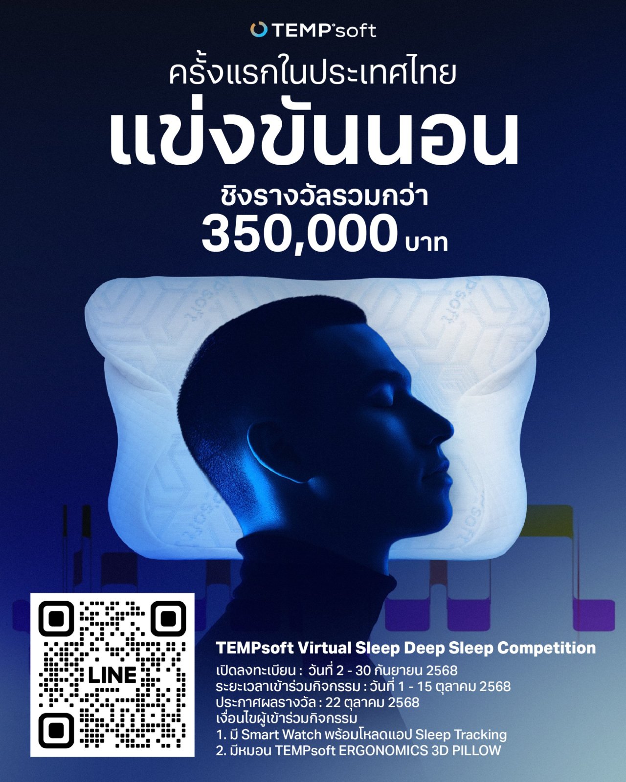ในโอกาสนี้ยังได้เปิดตัว “พงศ์สุข หิรัญพฤกษ์” จาก BT beartai ในฐานะพรีเซนเตอร์ของหมอน TEMPsoft 3D Orthopedics โดยเป็นการร่วมงานกันในรูปแบบ Co-Business ซึ่งคุณหนุ่ยได้แสดงผลการทดสอบหมอนร่วมกับ HUAWEI Fit 4 พบว่า การใช้ TEMPsoft 3D Orthopedics สามารถช่วยเพิ่มคุณภาพการหลับลึก (Deep Sleep) ได้สูงถึง 3 ชั่วโมง เทียบกับการนอนโดยไม่ใช้หมอนบนเครื่องบินที่มีผลหลับลึกเพียง 8 นาที ซึ่งเป็นการยืนยันด้วยข้อมูลจริงว่า หมอนรุ่นนี้ช่วยเสริมคุณภาพการนอนได้อย่างชัดเจน