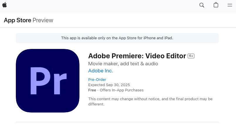 Adobe ประกาศ Adobe Premiere บน iPhone และ iPad โดยการมาคราวนี้เป็นแอปฯ ตัดต่อเต็มรูปแบบ ทำงานได้อิสระ มีระบบเลเยอร์ และไทม์ไลน์ขนาดใหญ่ พร้อมใส่ซับไทเทิลที่มีสไตล์ เลเยอร์วิดีโอ เสียง ได้อย่างละเอียดทุกเฟรม และใส่ข้อความได้ไม่จำกัด รองรับ 4K HDR และอีกมากมาย ไม่ใช่แค่แอปฯ เล็ก ๆ แบบ Adobe Premiere Clip และ Adobe Premiere Rush ที่ออกมานานก่อนหน้านี้ การมาเต็มรูปแบบยังคงการใช้งานที่ง่าย คุณภาพระดับมืออาชีพ ไม่มีลายน้ำ ไม่มีโฆษณา