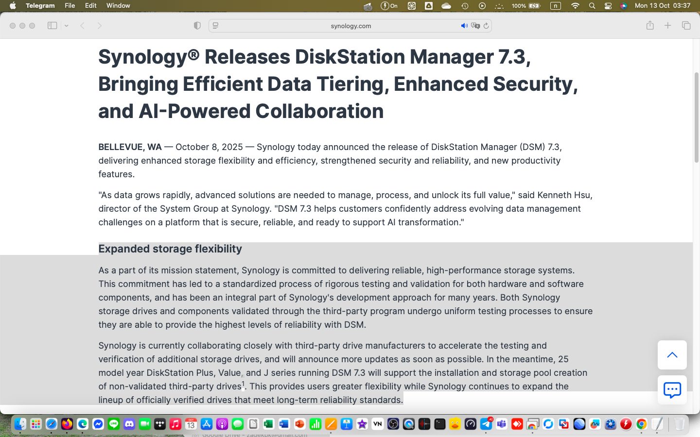 “ในระหว่างนี้ NAS รุ่นปี 2025 ของ Synology ในซีรีส์ DiskStation Plus, Value และ J ที่ใช้ระบบปฏิบัติการ DSM 7.3 จะสามารถ ติดตั้งและสร้าง Storage pool ด้วย Harddrive จากผู้ผลิตรายอื่นที่ยังไม่ได้รับการรับรองได้ ซึ่งช่วยให้ผู้ใช้งานมีความยืดหยุ่นมากขึ้น ในขณะที่ Synology ยังคงดำเนินการขยายรายการ Harddrive ที่ผ่านการรับรองอย่างเป็นทางการ ซึ่งมีมาตรฐานความเชื่อถือได้ในระยะยาว”