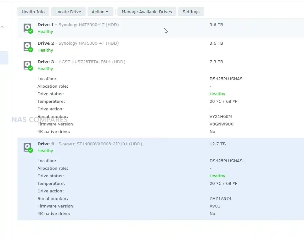 Synology จึงใช้ Enterprise Compatibility Framework อย่างเต็มรูปแบบ ซึ่งอนุญาตให้ใช้งานเฉพาะ Harddrive ที่ผ่านการตรวจสอบและอยู่ในฐานข้อมูลความเข้ากันได้อย่างเป็นทางการเท่านั้น