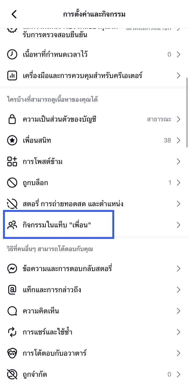 - ในช่องค้นหา ให้พิมพ์ว่า “กิจกรรมในแท็บเพื่อน” (หรือ Activity Friends Tab)