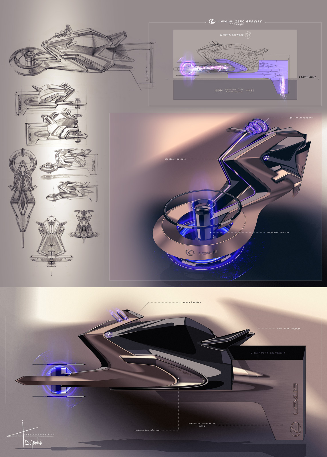 ภาพทั้งหมดดูเหมือนสถานที่ในเกมของ Halo ที่กำลังจะมาถึง และมีรถยนต์บนดวงจันทร์ที่ดูแข็งแกร่งที่สามารถกระโดดในสภาวะที่มีแรงโน้มถ่วงต่ำ ส่วน Lexus Cosmo เป็นจรวดในรูปลักษณ์ที่นักออกแบบรถยนต์ในทศวรรษที่ 1960 ต้องจดจ้อง เพราะยุคนั้นถือว่าเป็นยุครุ่งเรืองในวงการออกแบบรถยนต์ และ Lexus Lunar Mission จะเป็นยานลำเลียงขนาดใหญ่แบบ Starship Enterprise ใน Star Trek