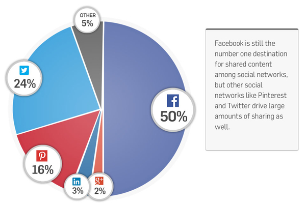 - อย่างสองคือ บริการโซเชียลที่ใช้แชร์ข้อมูล Facebook ครองครึ่งตลาด 50%, Twitter 24%, Pinterest 16%, LinkedIn 3% แต่ Google+ อยู่ที่ 2%