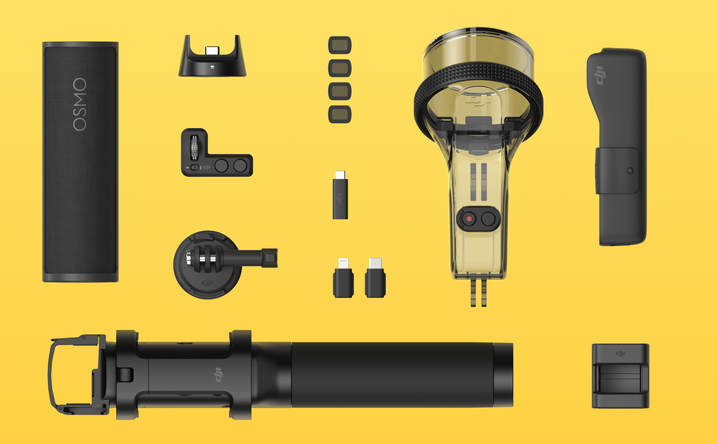 นอกจากนี้ DJI OSMO Pocket ยังมีอุปกรณ์เสริมอีกเพียบ เช่นหัวแปลง USB-C เป็นช่อง 3.5 mm สำหรับเสียบไมค์ (ใช่แล้ว ที่ตัวมันไม่มีช่อง 3.5 mm) หรืออแดปเตอร์เพิ่ม Wireless ให้เชื่อม Pocket กับสมาร์ทโฟนไร้สายได้ หรือแท่นชาร์จพกพา แล้วยังมีไม้เพิ่มความยาวและเป็นขาตั้ง รวมถึงเคสกันน้ำก็มีให้ใส่ด้วย