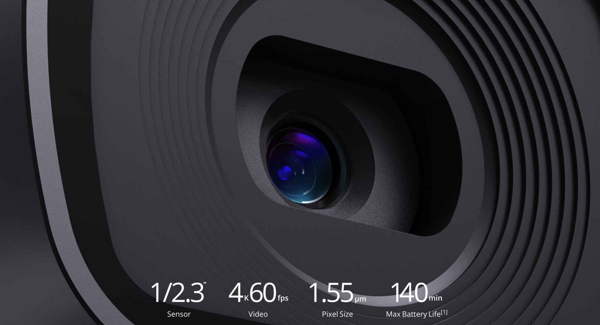 DJI OSMO Pocket ใช้เซนเซอร์รับภาพขนาด 1/2.3 นิ้ว f/2.0 ให้มุมภาพกว้าง 80 องศา (เทียบกับ GoPro Hero ให้มุมภาพกว้างสุด 149 องศา) ซึ่งสามารถถ่ายวิดีโอได้สูงสุด 4K 60 fps ที่ 100 Mbps ซึ่งก็น่าจะให้คุณภาพดีพอสำหรับเอาไปตัดต่อได้สบายๆ และยังสามารถปรับตั้งค่าแบบ Manual ได้ทั้งรูรับแสง, ISO, ความเร็วชัตเตอร์ แถมถ่าย RAW และวิดีโอแบบ D-Cinelike ได้ด้วย ส่วนแบตเตอรี่ใช้งานได้ 140 นาทีเมื่อถ่าย FullHD 30 fps และใช้เวลาชาร์จ 73 นาที
