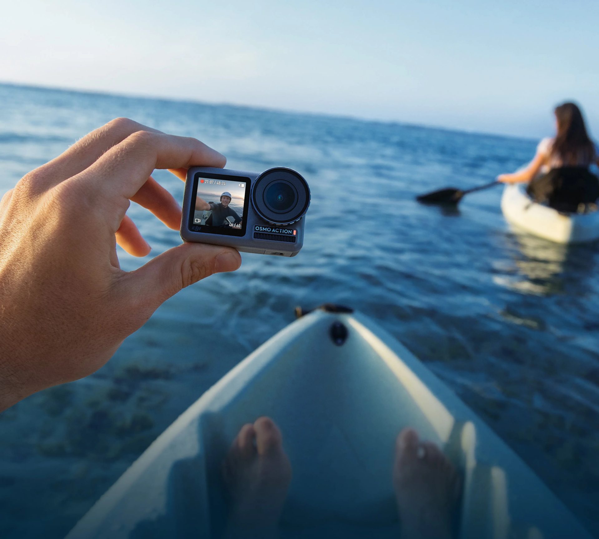 DJI OSMO Action มาพร้อมกับจอด้านหลังขนาด 2.25 นิ้ว และกล้องหน้าขนาด 1.4 นิ้ว สำหรับการทำ VLOG และเซลฟี่ได้ง่ายขึ้น รันบนระบบปฏิบัติการ Action OS ที่จะทำให้การควบคุม OSMO Action เป็นเรื่องที่ง่ายดาย สามารถกันน้ำได้ลึกถึง 11 เมตร