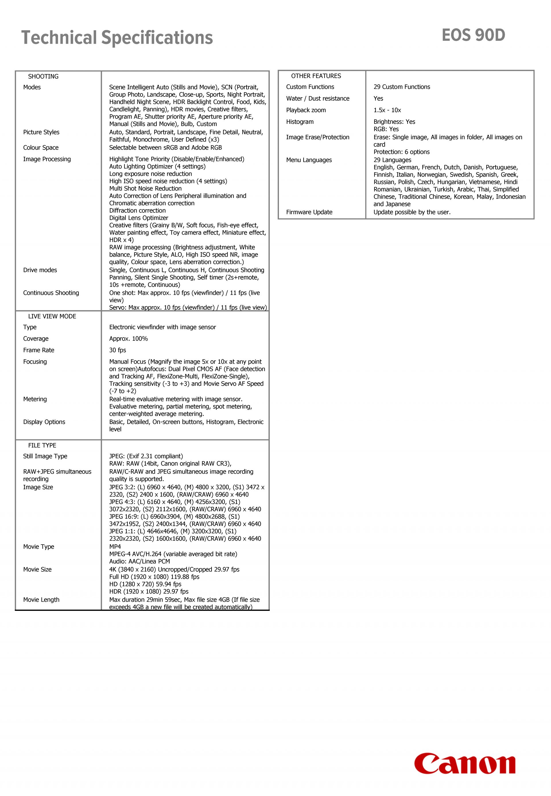 เป็นที่ทราบกันอยู่ว่า Canon เตรียมจะเปิดตัวกล้องรุ่นใหม่ในตระกูล EOS อย่าง EOS 90D และ EOS M6 Mark II ซึ่งหลาย ๆ สื่อคาดว่าจะมีการเปิดตัวในเดือนกันยายนนี้พร้อมสเปกบางอย่างที่หลุดออกมา แต่ล่าสุดทาง Canon Australia ได้เผลอโพสต์วิดีโอแนะนำพร้อมปล่อยหน้าเว็บและไฟล์ Tech Sheet ออกมาแล้วก่อนการเปิดตัวที่จะถึง (ภายหลังได้ถูกลบออกไปแล้ว)