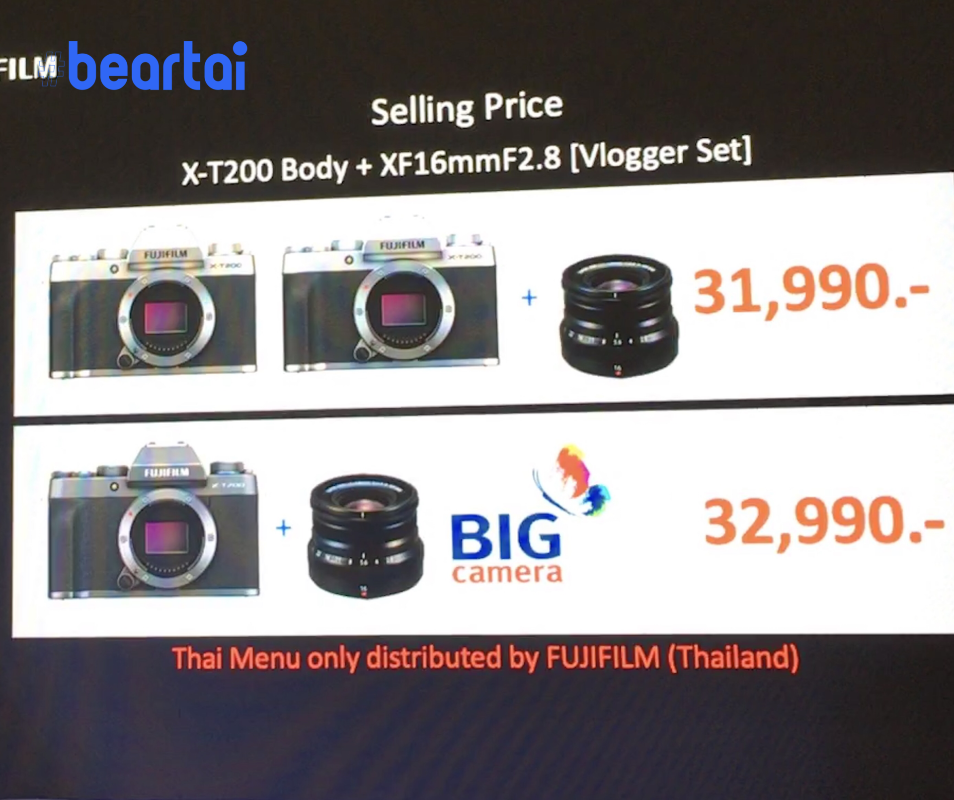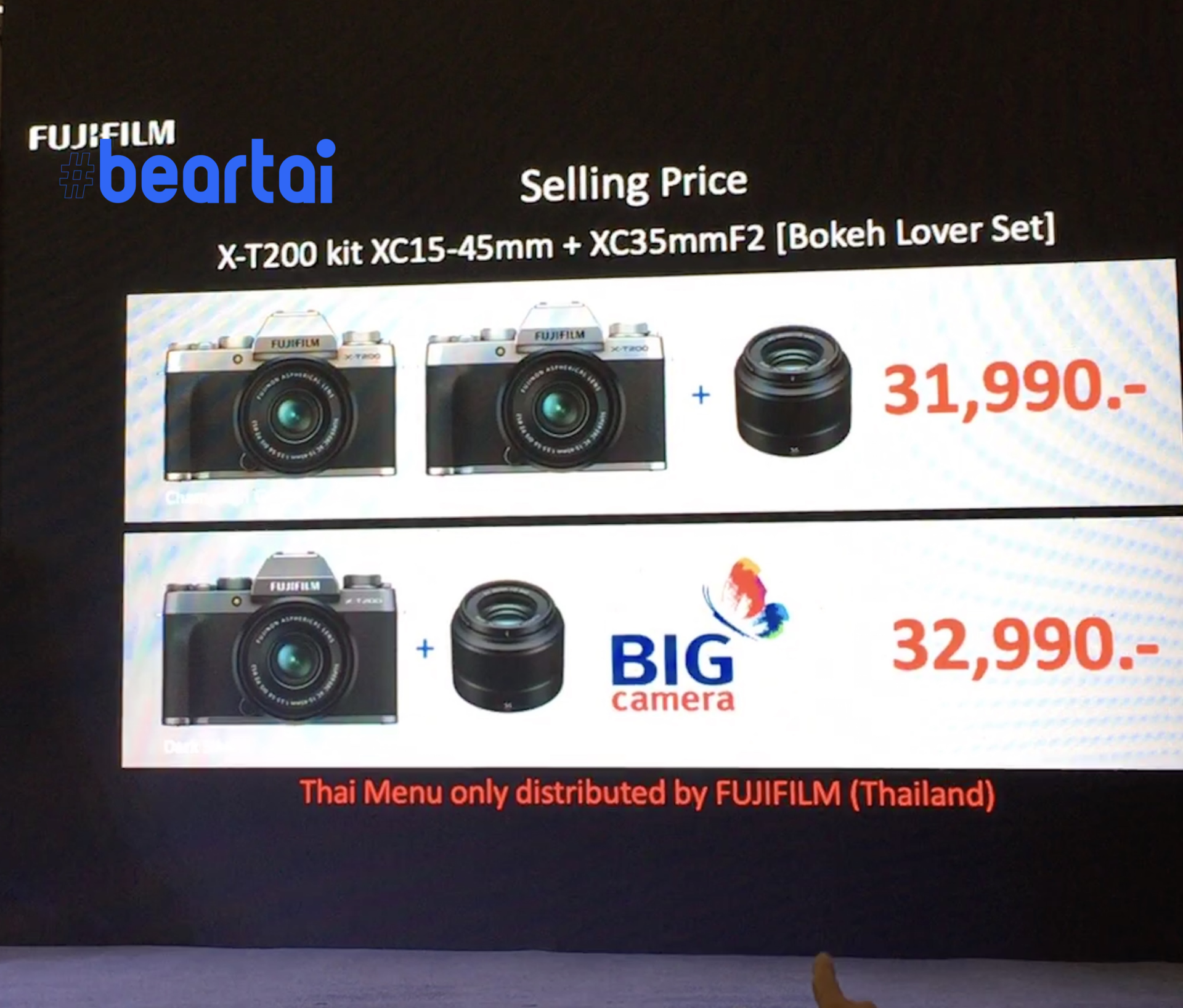 มีหนึ่งเรื่องที่น่าสังเกตเกี่ยวกับราคาก็คือ ทาง Fuji ไม่ได้ประกาศราคาเฉพาะบอดี้ X-T200 เลย เป็นไปได้ว่าอาจจะ “ไม่มีการขายแยกเฉพาะบอดี้” อันนี้เป็นแค่การคาดเดาเท่านั้น เราคงต้องติดตามดูกันในวันวางจำหน่ายจริงช่วงสิ้นเดือนนี้ และสำหรับใครที่อยากดูเรื่องจุดเด่นก็เช็กที่ด้านล่างนี้ได้เลย
