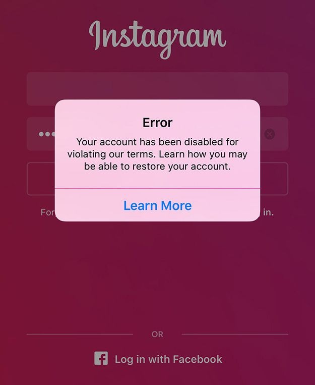 Your account has been disabled for not following the Instagram Community Guidelines, and we won’t be able to reactivate it. We disable accounts that post content that is sexually suggestive or contains nudity.