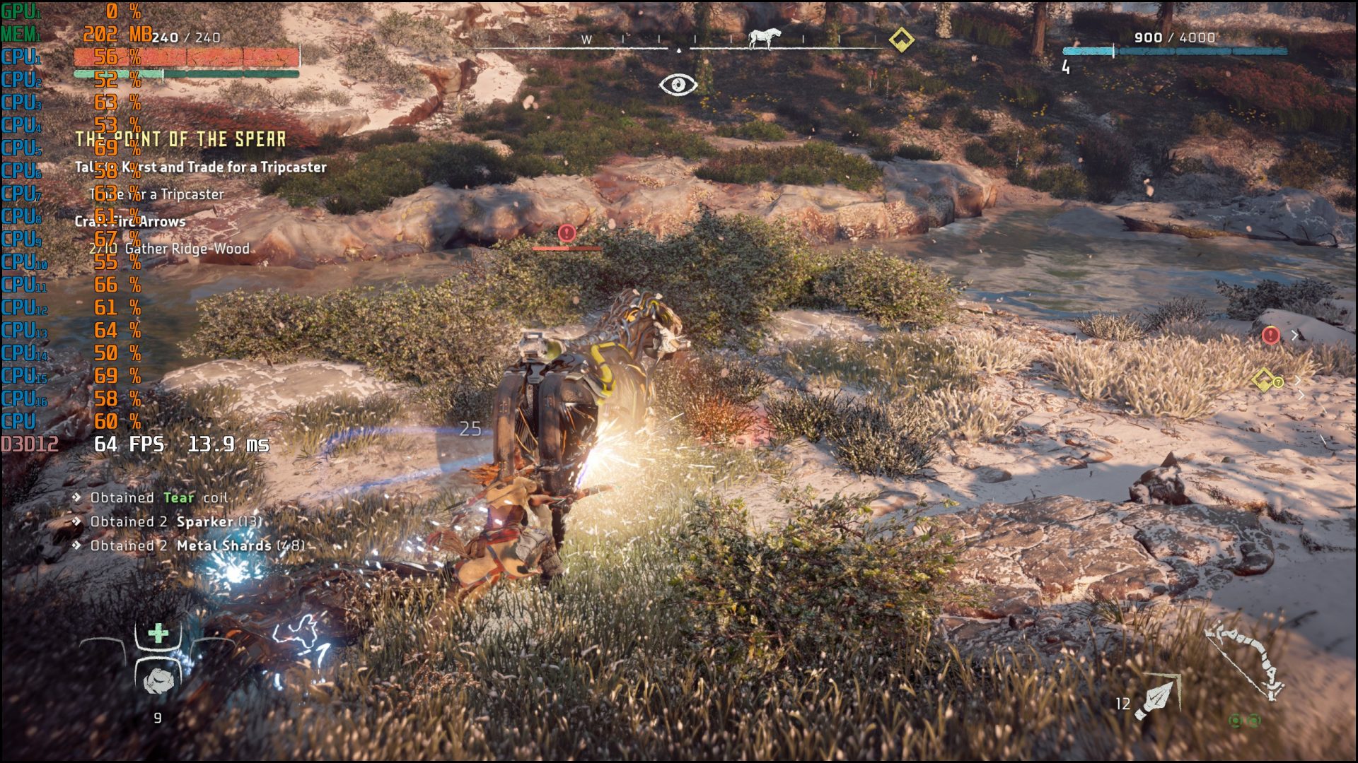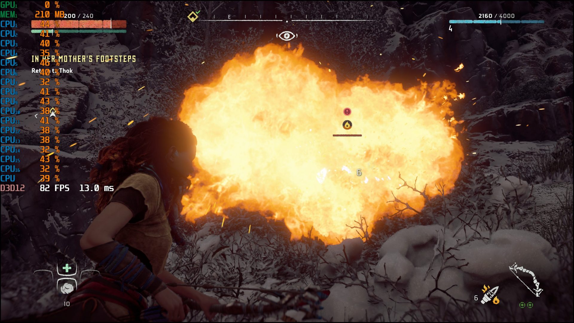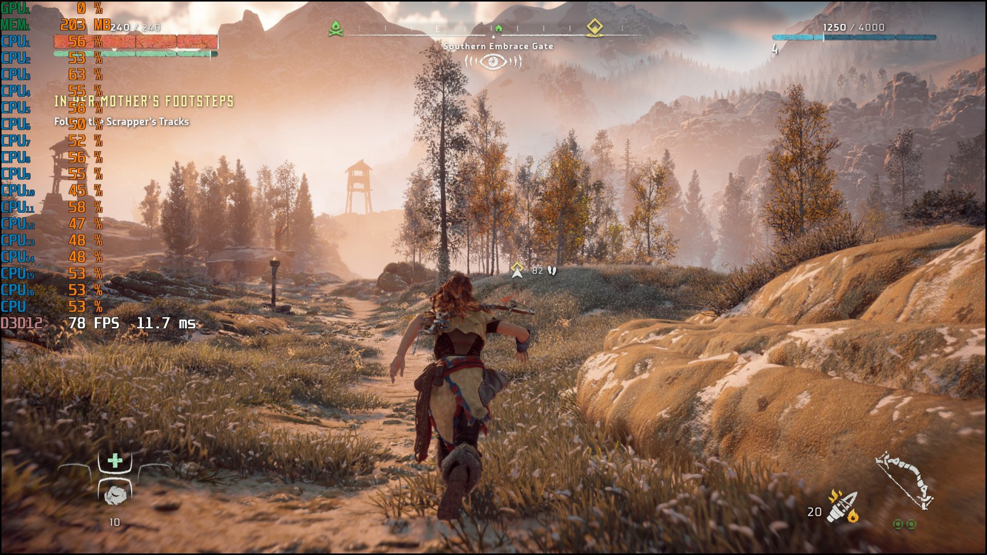 เริ่มต้นกับการเทสต์ด้วย Horizon Zero Dawn Complete Edition อดีตเกมเอ็กซ์คลูซีฟบน PlayStation 4 ที่ในตอนนี้ตัวเกมมีการ Optimize ออกมาได้ดีต่างจากช่วงแรก แต่ด้วยความที่เกมแนว Open World สามารถใช้ในการทดสอบพลังของซีพียูได้ เพราะโมเดลจำนวนมากต้องถูกเรนเดอร์พร้อม ๆ กัน ซึ่งผู้เขียนก็ตั้งค่าอัตราส่วนภาพสูงสุดเท่าที่หน้าจอของ Lenovo Legion 5 รุ่นนี้จะทำได้คือ 2K (2560 x 1440) พร้อมเลือก Preset กราฟิกให้เป็น Ultra และเสียบอแดปเตอร์ชาร์จอยู่ ผลลัพธ์นั้นก็ไม่น่าจะเกิดความคาดหมาย ผ่านฉลุยแหละครับ เฟรมเรตนั้นจะวิ่งเกิน 60 FPS ในขณะที่ Thread ของแต่ละ Core ก็จะไม่เกิน 70% ซึ่งถือว่ามีการแบ่งหน้าที่ทำงานได้ดี