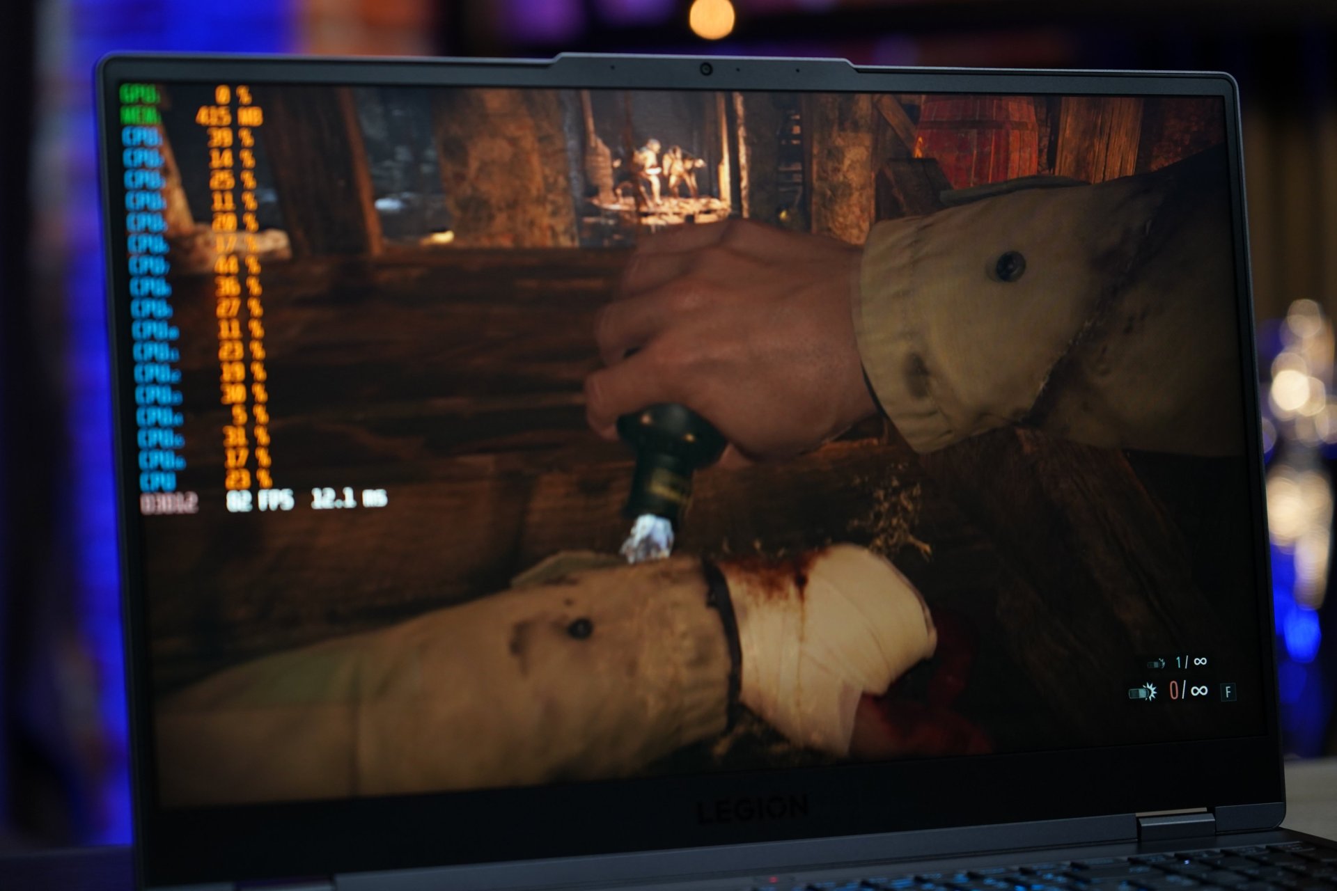 ถัดมาเป็น Metro Exodus: Enhance Edition เกมที่พร้อมจะชาเลนจ์พีซีและโน้ตบุ๊กสเปกโหด ๆ เพราะในเวอร์ชันนี้เป็นการอัปเกรดตัวเกมให้ฟีเจอร์ด้านกราฟิกต่าง ๆ โดยหนึ่งในความเก๋าเลยคือฟีเจอร์ Ray-tracing ที่ตัวเกมไม่มีให้ปิดฟีเจอร์นี้ เช่นเดิม ผู้เขียนยังคงตั้งค่าอัตราส่วนเป็น 2K เลือก Preset กราฟิกของเกมเป็น Ultra โดยผลลัพธ์ที่ออกมาเฟรมเรตจะรันอยู่ที่ราว ๆ 30 – 35 FPS ในฉากคัตซีนที่รันแบบเรียลไทม์ ซึ่งก็จะเห็นได้ว่ามีบาง Thread พุ่งไปถึง 90%