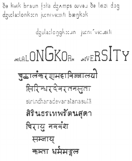 นอกจากนี้เรื่องฟอนต์หรือแบบอักษรก็เป็นอีกเรื่องที่สนพระราชหฤทัย โดยได้ทรงประดิษฐ์ฟอนต์ไทยหลายแบบ เช่น แบบจิตรลดา แบบภูพิงค์ ต่อมาได้หันมาศึกษาการแสดงตัวเทวนาครีบนจอภาพ หรือที่พระองค์ท่านทรงเรียกว่า “ภาษาแขก” ด้วยพระองค์เองจากพจนานุกรมและตำราภาษาสันสกฤต และและทรงสอบถามจากผู้เชี่ยวชาญด้านภาษาบาลีสันสกฤต อย่าง สมเด็จพระเทพรัตนราชสุดาฯ สยามบรมราชกุมารี และท่านองคมนตรี ม.ล. จิรายุ นพวงศ์ ซึ่งเหตุผลที่พระองค์ท่านสนพระราชหฤทัยในเรื่องนี้ เพราะในหลวงต้องการศึกษาคำสอนและข้อธรรมะของพระพุทธศาสนาอย่างจริงจังตามภาษาดั่งเดิมที่บันทึกกันมา