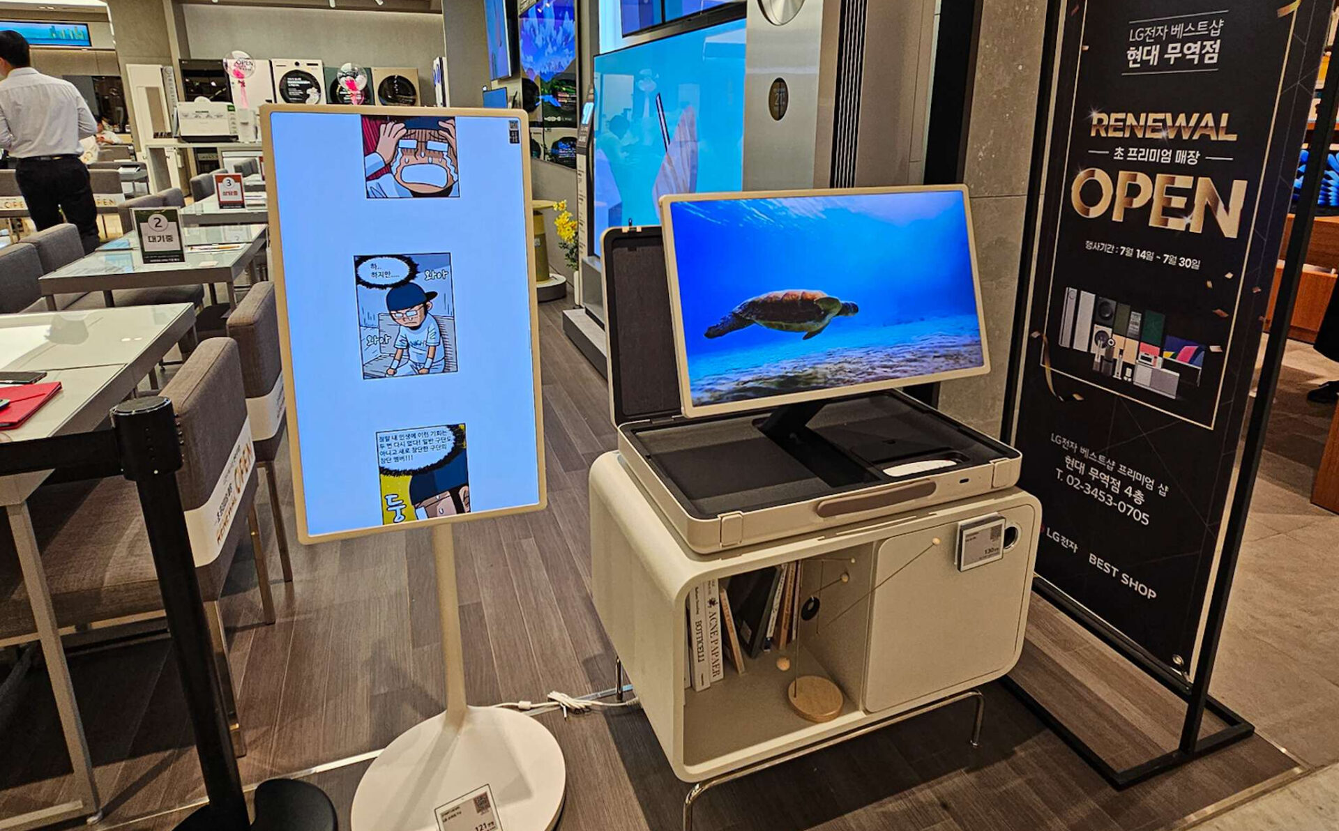 ในตัวมีแบตเตอรี่ใช้ได้ประมาณ 3 ชั่วโมง และลำโพงในตัวด้วย เป็นระบบ Dolby Atmos ทั้งคู่ สำหรับคนที่อยากจะพกออกไปตั้งข้างนอก แล้วใช้จอได้เลย สะดวกสบายดีครับ ซึ่งราคาที่วางขายอยู่ในเกาหลีใต้ ณ ตอนนี้มีราคาอยู่ที่ 1,170,000 วอน หรือประมาณ 31,000 บาทไทย