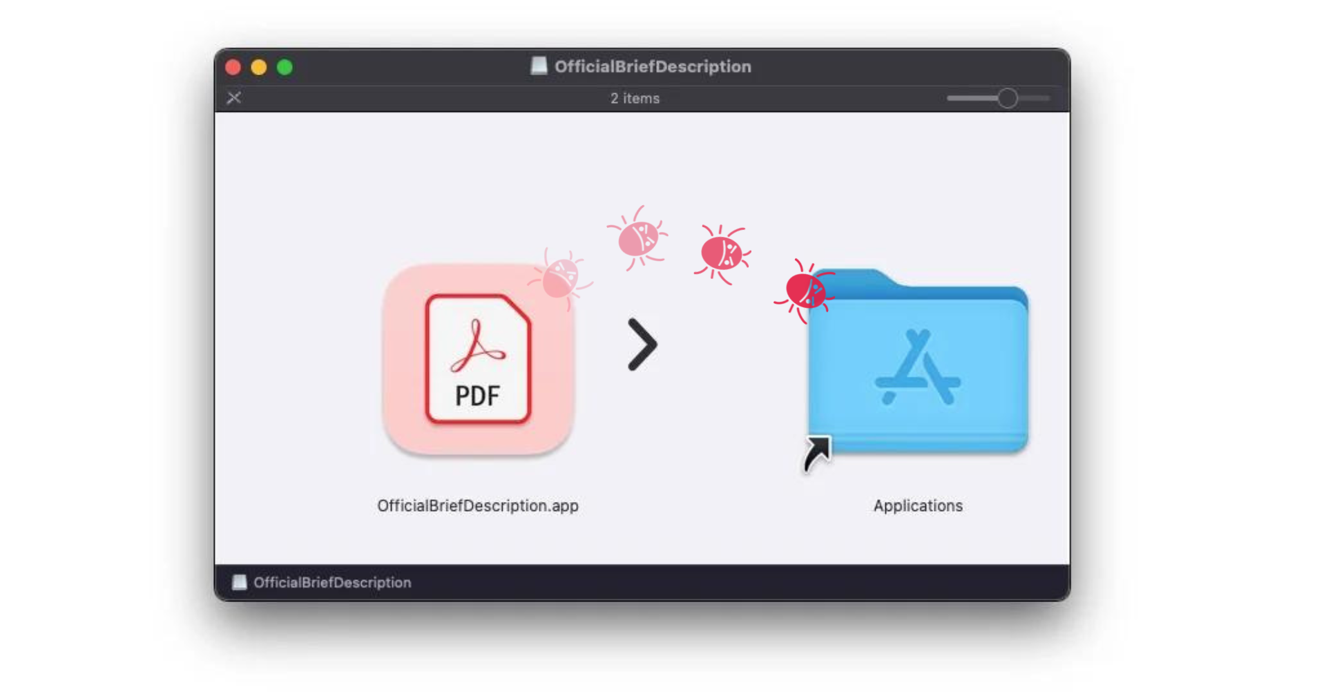 การสร้างแอปพลิเคชันไว้ในไฟล์ดิสก์อิมเมจเพื่อให้ได้ไฟล์ชื่อ Info.plist ขึ้นมานั้นสามารถสร้างได้ง่าย และยังใช้ทรัพยากรในการสร้างเพียงน้อยนิด โดยในโฟลเดอร์จะประกอบไปด้วย รูปที่ใช้แทนตัวโปรแกรม (icon image) และ โฟลเดอร์ระบบปฏิบัติการ macOS ที่มีมัลแวร์ฝังอยู่