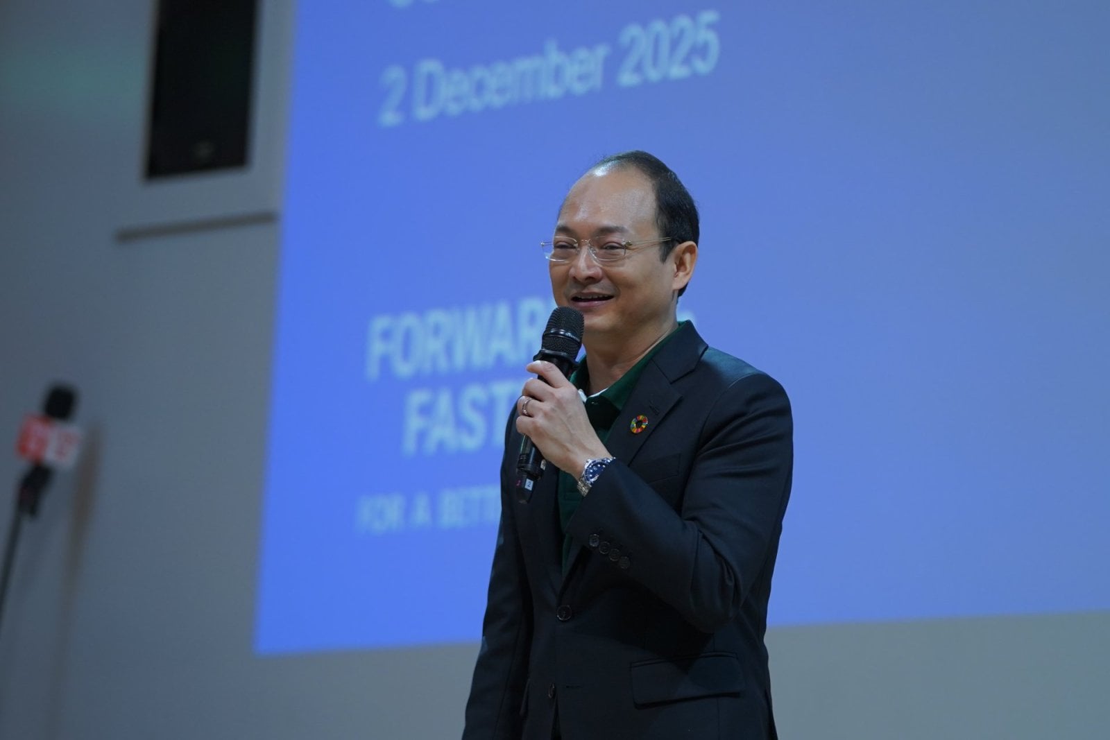 ในส่วนของทิศทางระดับสากล ดร. เนติธร ประดิษฐ์สาร ได้เปรียบเทียบบทบาทของหน่วยงาน Global Partnership ว่าเป็นเสมือน ‘เรดาร์และประภาคาร’ ที่คอยตรวจจับสัญญาณความเปลี่ยนแปลงของโลก เพื่อนำมาปรับใช้ และเชื่อมโยงองค์กรไทยเข้ากับมาตรฐานสากล โดยมีกลยุทธ์สำคัญคือการทำเรื่องยากให้เข้าใจง่าย และทำเรื่องความยั่งยืนให้เป็นเรื่องสนุก ท่ามกลาง 4 ความท้าทายหลักของโลกในปัจจุบัน คือ ความขัดแย้งทางภูมิรัฐศาสตร์ (Geopolitics), วิกฤตสภาพภูมิอากาศ (Climate Change), การเติบโตของเทคโนโลยี AI และความเหลื่อมล้ำทางสังคม ดร. เนติธร เน้นย้ำถึงความสำคัญของการพาองค์กรไปยืนในเวทีระดับโลก อาทิ World Economic Forum และ UN Global Compact เพื่อแสดงจุดยืนในฐานะ ‘ยักษ์ใหญ่ฝ่ายดี’ และทำหน้าที่เป็นตัวกลางในการเชื่อมประสานเครือข่ายพันธมิตรและคนรุ่นใหม่เพื่อร่วมกันขับเคลื่อนโลกไปข้างหน้าอย่างมั่นคง