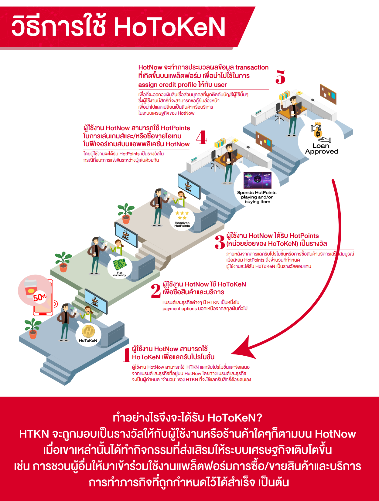 HoToKeN จึงสามารถโตได้ด้วยการสร้างงานให้มันทำ สร้างความต้องการในระบบเศรษฐกิจย่อมๆ ที่เกี่ยวข้องกับ HotNow นั้นเอง นอกจากนี้ HoToKeN เองยังมีความสามารถ Smart Contract หรือสัญญาอัจฉริยะที่จะทำงานอัตโนมัติเมื่อตรงตามเงื่อนไขที่กำหนด เช่นการใช้แลกรับบริการ ตัว Smart Contract ก็จะตรวจสอบเงื่อนไขว่ามีการจ่าย HoToKeN ตรงกับที่กำหนดไว้หรือไม่ ถ้าตรงก็จะปลดล็อกบริการนั้นให้ใช้ต่อไป ซึ่งพื้นฐานเหล่านี้ก็จะเป็นรากฐานให้ HoToKeN เติบโตได้ต่อไปในอนาคต